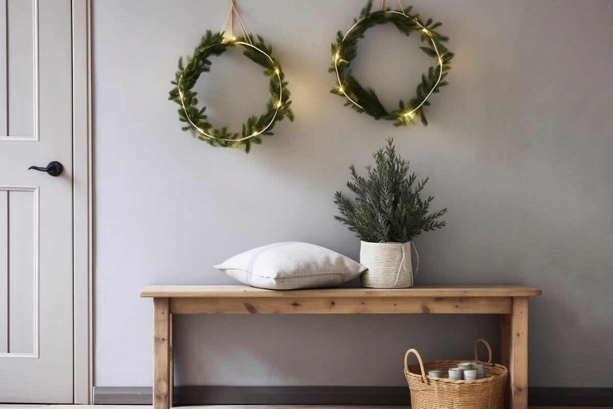 14. Işıklı Çelenklerle Modern Bir Karşılama