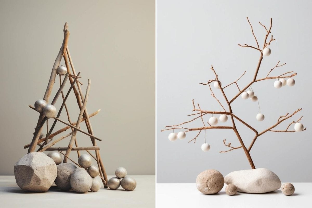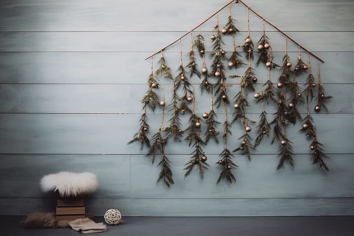 Klasik çam ağacı yerine doğal dallarla hazırlanmış modern bir ağaç ya da duvara uygulanan minimalist bir ağaç formu tercih edilebilir. Küçük alanlarda son derece etkili bir çözümdür.